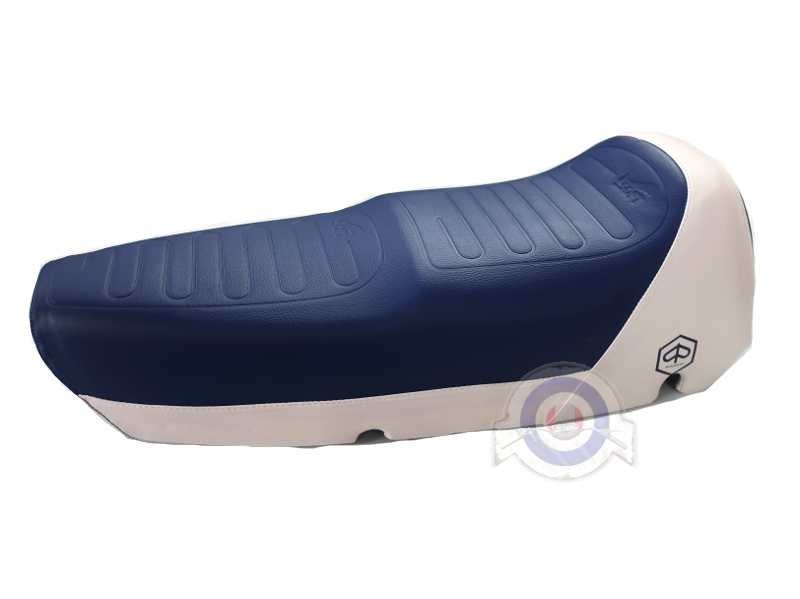 Asiento SPORT color azul oscuro y blanco, alta calidad, recambio original Piaggio.